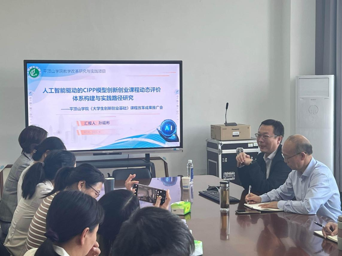 9月25日,创新创业学院孙延彬院长、王晓静老师立项的“2025年人工智能校级教学改革研究与实践专项”成果推广会在我院进行,学院全体教师参与本次会议。