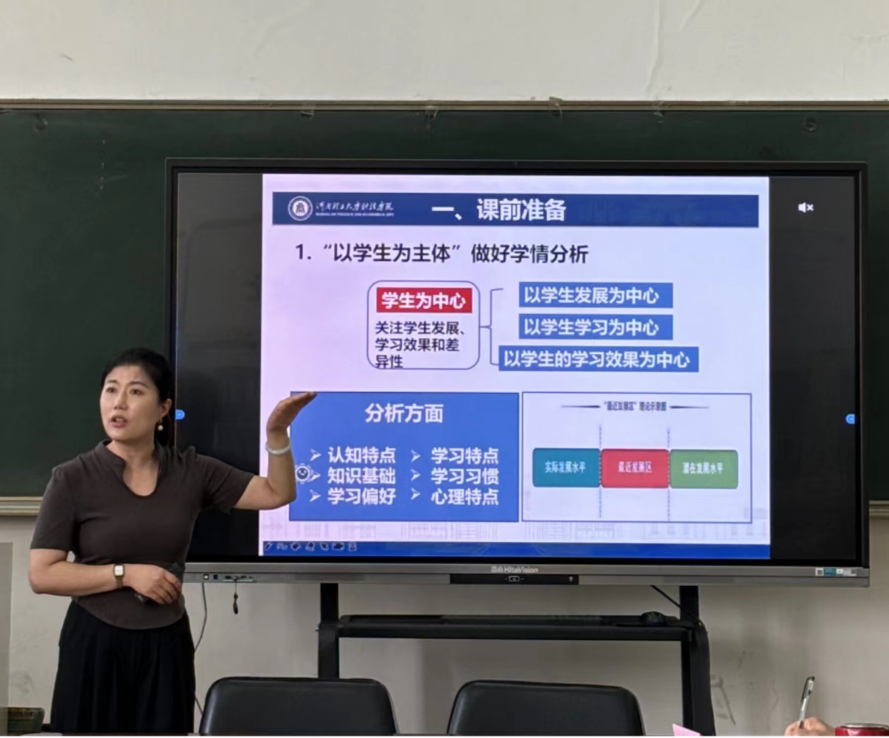 在本次培训中,孙老师以“如何上好一门课”为主题,分享了她在教学实践中积累的宝贵经验。她强调了“以学生为主体”的学情分析,提倡教师在课前准备中充分考虑学生的认知特点、学习习惯和心理特点,以实现教学内容与学生需求的精准对接。孙老师还介绍了多种教学设计方法,如五星教学法、问题链教学法和BOPPPPS教学法等,鼓励教师们采用创新的教学模式,提高课堂的互动性和学生的参与度。