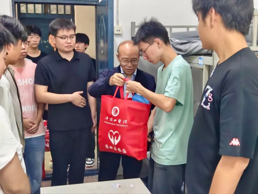 走访中,学院领导与辅导员走进宿舍,为新生送上爱心大礼包,围绕生活适应与学习规划亲切交流。张振江关切询问学生“家乡离学校远不远”“对专业课学习有什么期待”,鼓励大家结合经管专业特色尽早制定学习计划,主动参与学术活动,在实践中提升专业素养。杨玉敬仔细查看宿舍生活设施,了解“食堂饭菜是否合口味”“生活用品还缺不缺”,叮嘱同学们相互关照、快速融入集体,遇困难及时联系辅导员。