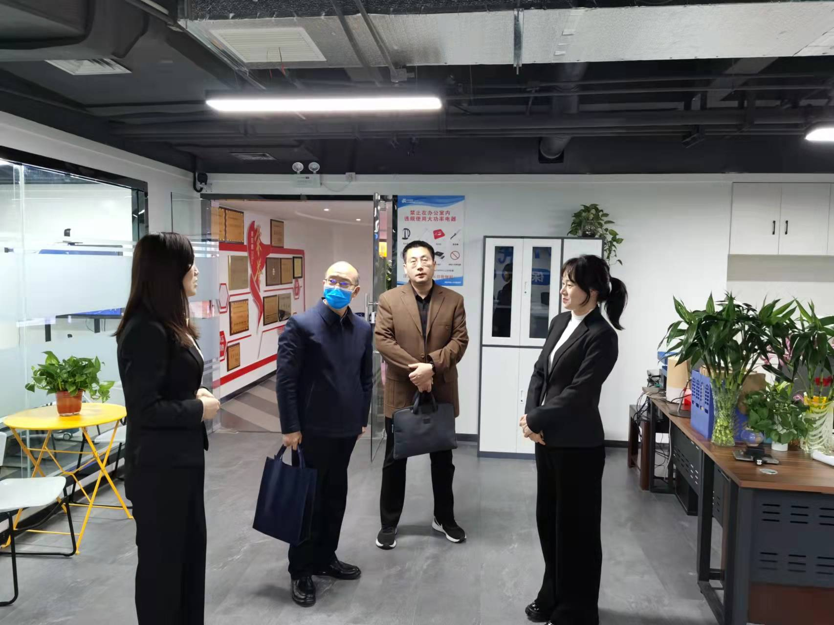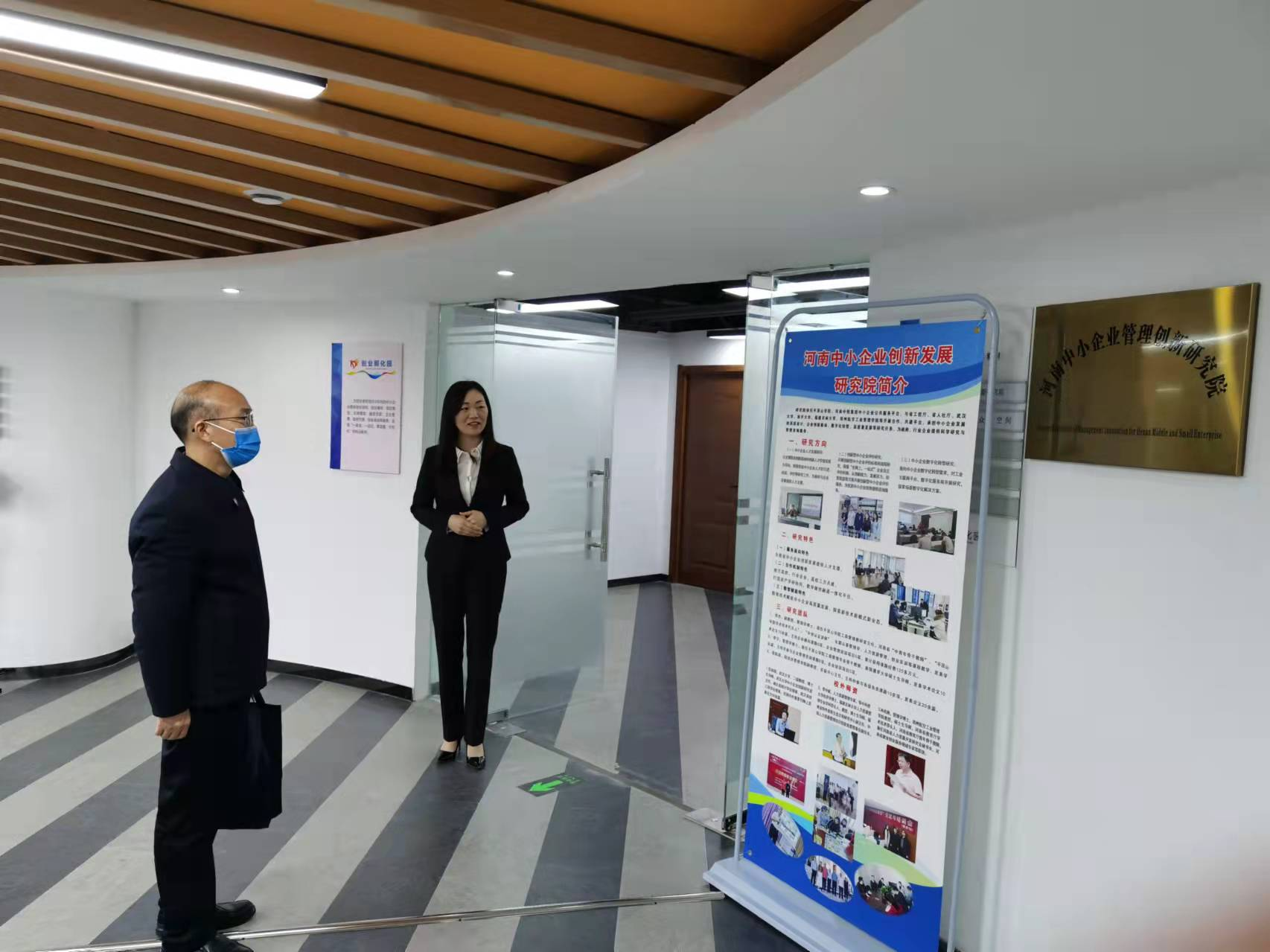2022年3月16日下午,william威廉英国院长张振江,工商管理教研室贺杰、李宁对河南省中小企业公共服务平台平顶山中业示范平台进行考察交流。