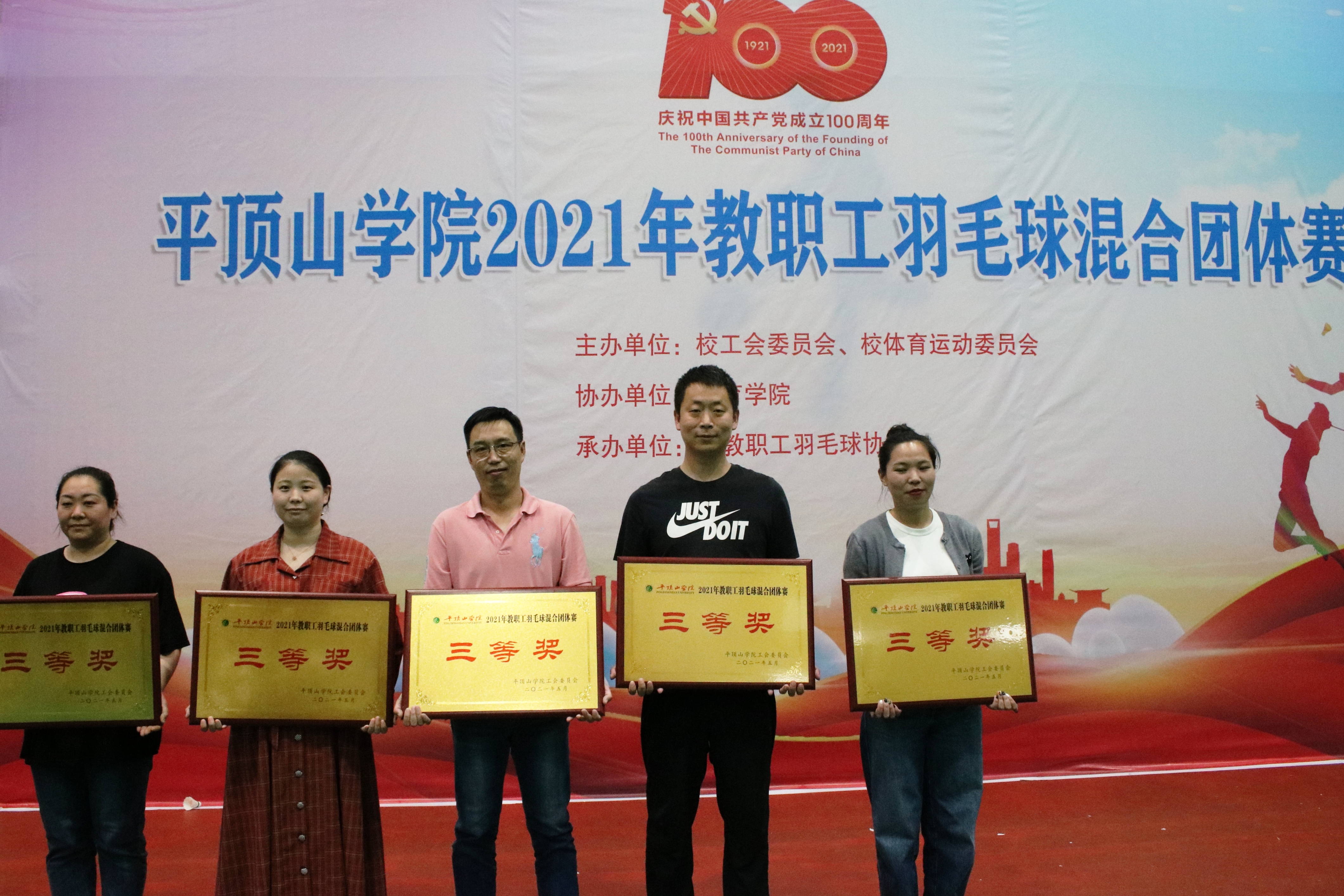 经过近两周紧张激烈的比赛,5月19日下午,我院教职工分工会在庆祝中国共产党成立100周年教职工羽毛球混合团体赛中荣获三等奖。