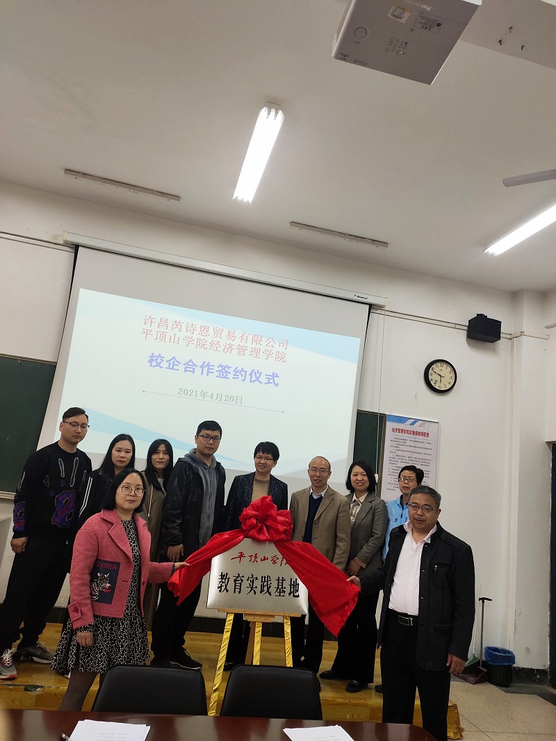 在热烈的掌声中,william威廉英国院长张振江与许昌芮诗恩贸易有限公司人力资源部经理王瑞芹代表双方签订了校企合作协议;副院长李文同与许昌芮诗恩贸易有限公司人力资源部经理王瑞芹共同为“williamhill英国-许昌芮诗恩贸易有限公司教育实践基地”揭牌。