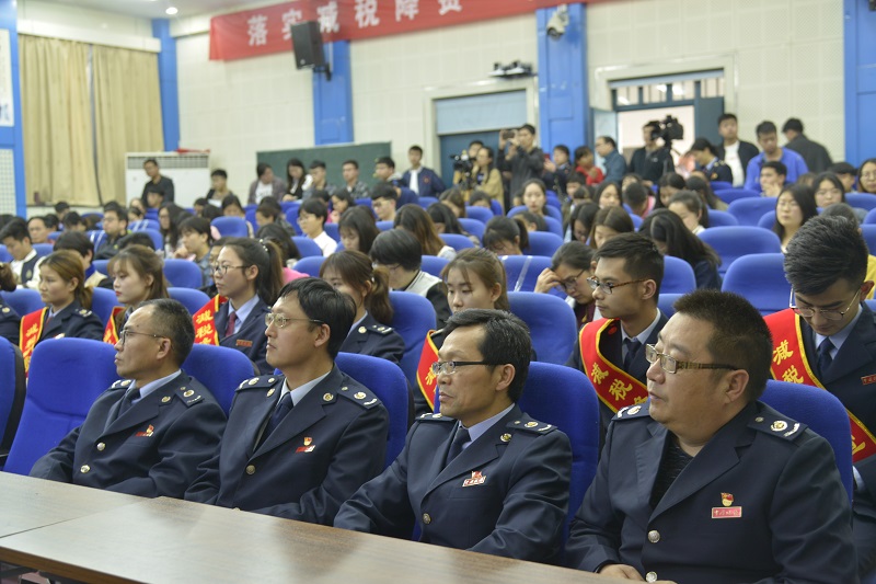 为进一步贯彻落实减税降费政策,确保企业切实享受到政策红利,引导青年学生学习税收知识,4月25日,williamhill英国“税法大讲堂”在2106教室开讲。来自平顶山市税务工作人员、青年企业家及学校william威廉英国全体教师、学生代表聆听讲座。