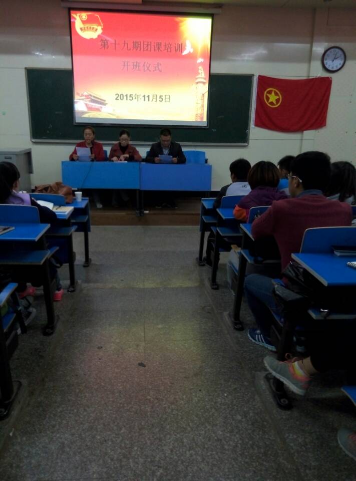 11月5日,经济与管理学院第十九期团课培训开班仪式在4106教室举办,化学化工学院团总支书记冯建和体育系周加兵老师担任主讲,经济与管理学院团总支书记张小雪出席会议,2015级全体团员参加了会议。