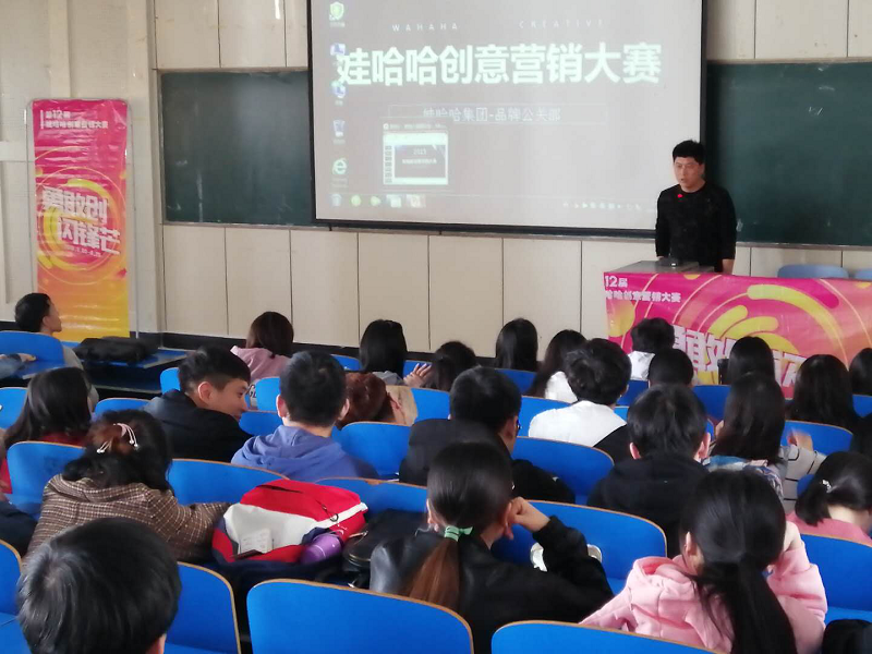 娃哈哈集团平顶山区域经理马文彬经理首先对学校和william威廉英国领导的支持表示感谢,同时陈述了娃哈哈集团的市场地位,回顾了历届“娃哈哈”营销大赛并为同学们仔细讲解本届大赛的活动规则和评分要求。指出此次实践大赛旨在通过比赛形式与高校组建营销实践基地,由老师指导学生针对“娃哈哈”公司的产品进行市场调查、营销策划、产品销售与推广等实战活动,为娃哈哈集团进行产品及品牌宣传销售的同时,储备优秀人才。