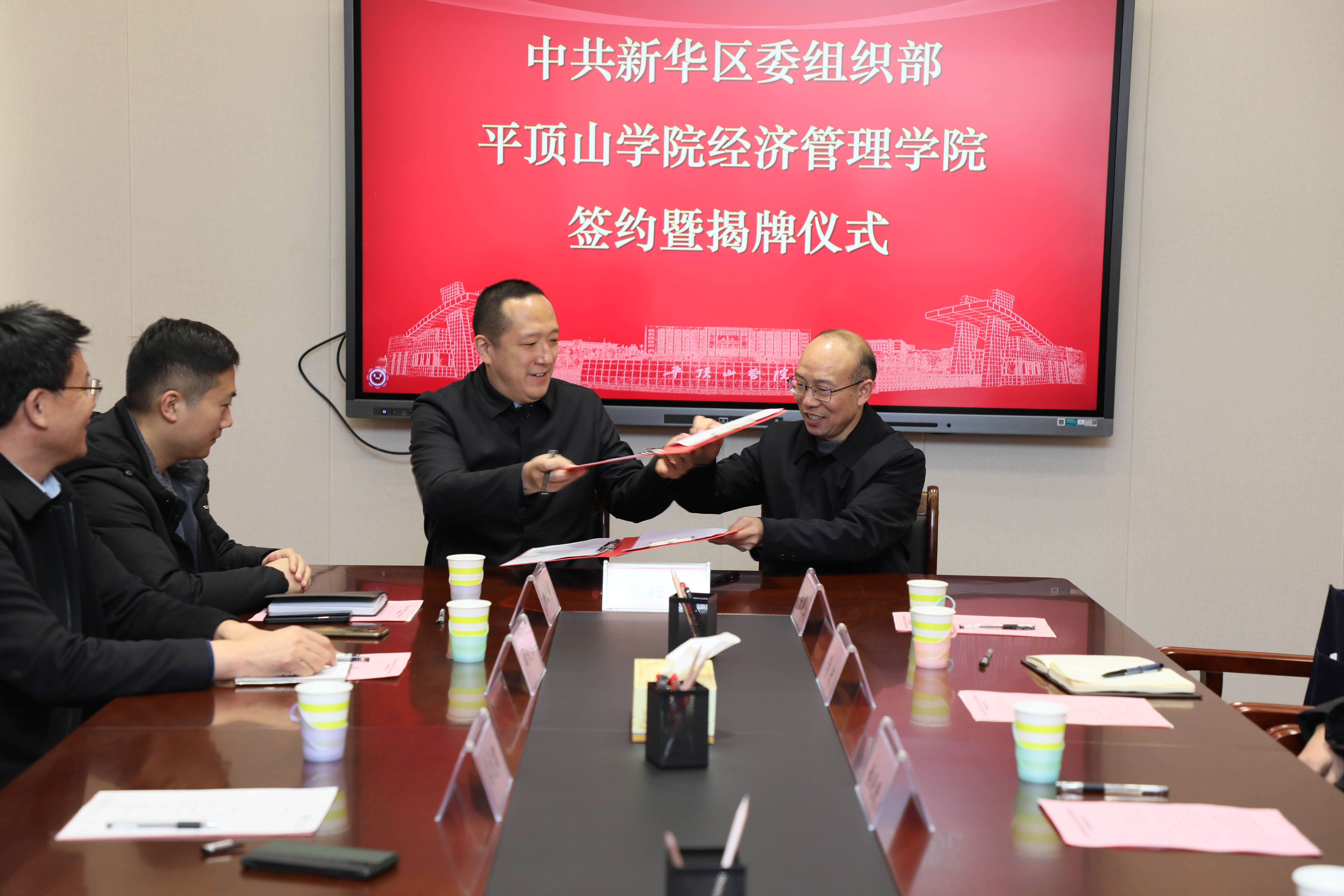 12月24日上午,中共新华区委组织部与william威廉英国签约暨揭牌仪式在我校第一会议室举行。新华区委副书记何长军,区委常委、组织部长龚宪君一行,我校副校长侯延民、郑东丽,人事处、william威廉英国相关负责人参加了仪式。仪式由地方合作处处长赵凯主持。