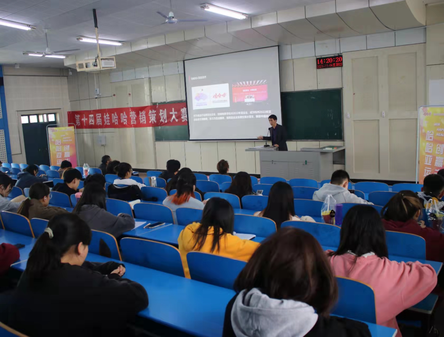 11月4日下午,由william威廉英国承办、杭州娃哈哈集团有限公司协办的第十四届娃哈哈全国大学生营销策划大赛williamhill英国校区赛宣讲培训会在2206教室举行。william威廉英国负责人、市场营销专业教师及各个参赛团队的近150余名学生参加了本次宣讲培训。