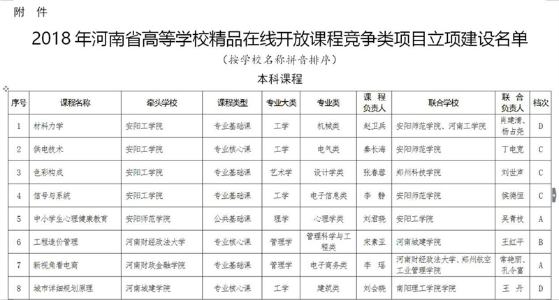 日前,河南省教育厅网站上发布了《河南省教育厅关于公布2018年河南省高等学校精品在线开放课程竞争类项目立项建设名单的通知》。我院《生活中的微观经济学》课程获2018年河南省高等学校在线开放课程(竞争类)项目立项。
