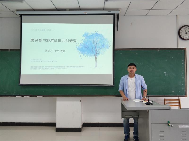 李宁博士在讲座中以河南省5A级风景区(13处)当地居民生活满意度及参与价值共创的研究为主要内容,从景区当地居民价值共创的基本理论、如何构建居民参与旅游价值共创影响机理的整合模型和具体的实务建议的提出三个方面进行了详细的论述。重点讲述了促进当地居民加入到旅游者共同创造价值的行列中来的主要因素,以及当地居民感知到旅游发展带来的经济和社会文化方面的影响,及在参与价值共创中存在的问题以及问题原因,针对问题提出相应的举措。本次讲座让在场的学生开阔了学术视野,受到了教育。