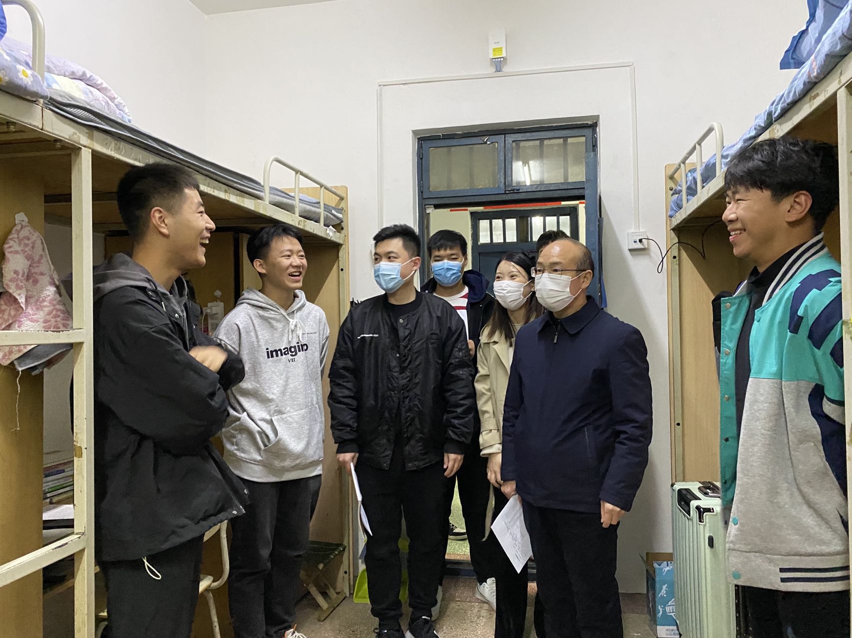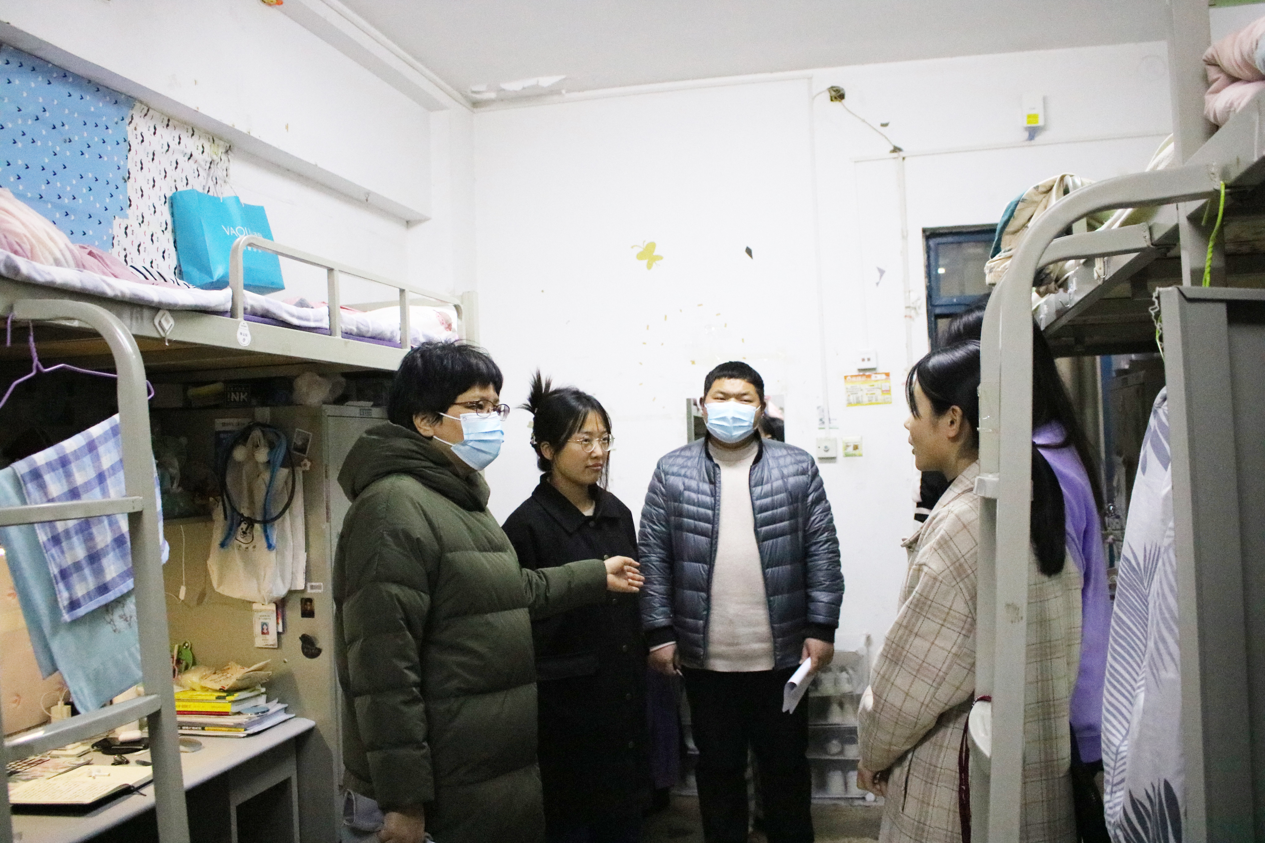 查寝过程中,各党政领导及老师们细心检查了学生寝室内务,进行安全排查并清查人数。老师们向大家阐明学校疫情防控具体要求,提醒同学们要严格遵守学校防疫规定,严禁私自外出;叮嘱同学们注意寝室卫生,及时通风,做好冬季防寒保暖,谨防感冒。同时,老师们还询问了同学们近期的生活情况,给予大家关心和鼓励。