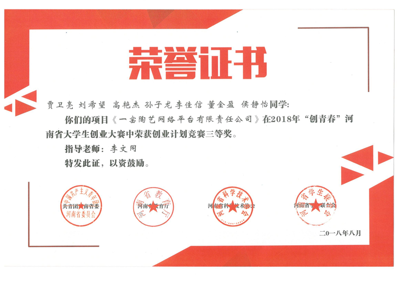 近日,我院学生参赛的三个项目在2018年“创青春”河南省大学生创业大赛上均获得三等奖。