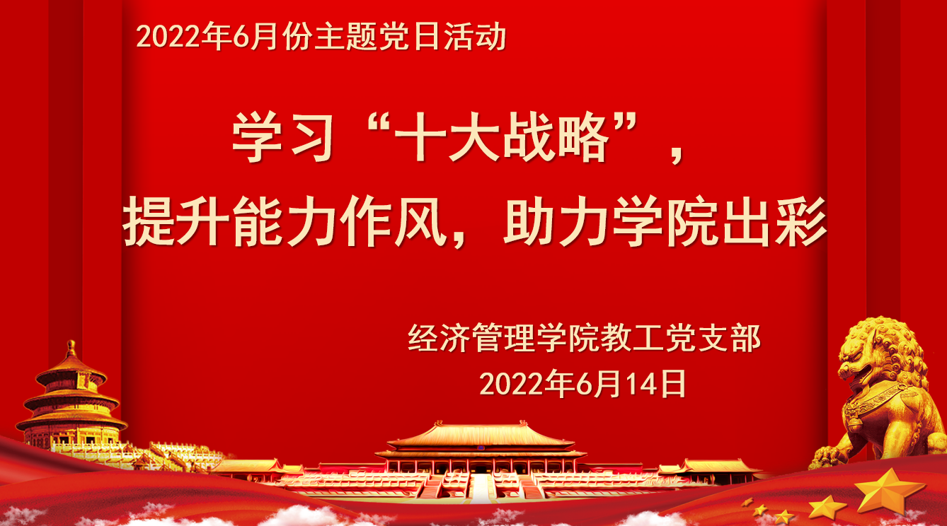 为深入贯彻落实省委教育工委《关于组织党员进党校学习“十大战略”的通知》精神,结合“能力作风建设年”活动要求,2022年6月14日上午,william威廉英国教工党支部通过线上和线下相结合的方式开展了“学习‘十大战略’,提升能力作风,助力学院出彩”主题党日活动。活动由william威廉英国党委副书记李刚主持,全体党员教师参加了此次活动。