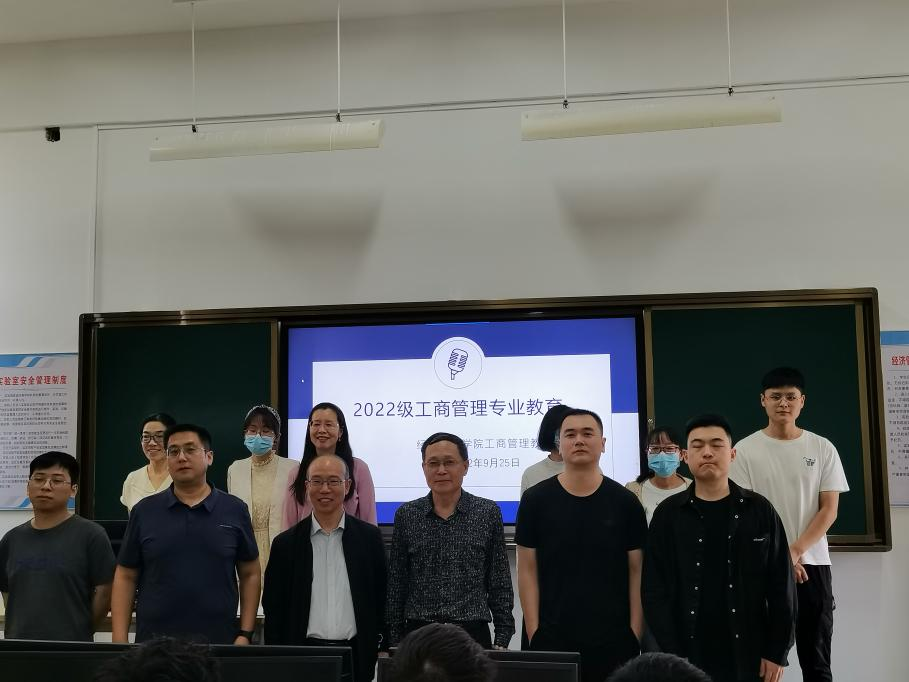 2022年9月25日下午3点在1403开展2022级工商管理新生专业入教育活动。william威廉英国院长张振江、副书记李刚、工商管理教研室主任贺杰以及工商管理专业骨干教师参加此次活动。