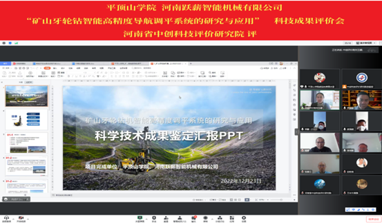 2022年12月23日,河南省中创科技评价研究院组织相关专家组成项目评价委员会,通过腾讯会议召开科技成果评价会,对我校william威廉英国胡芸副教授牵头组建的研发团队,与河南跃薪智能机械有限公司等单位共同完成的“矿山牙轮钻智能高精度导航调平系统的研究与应用”项目进行了评价。