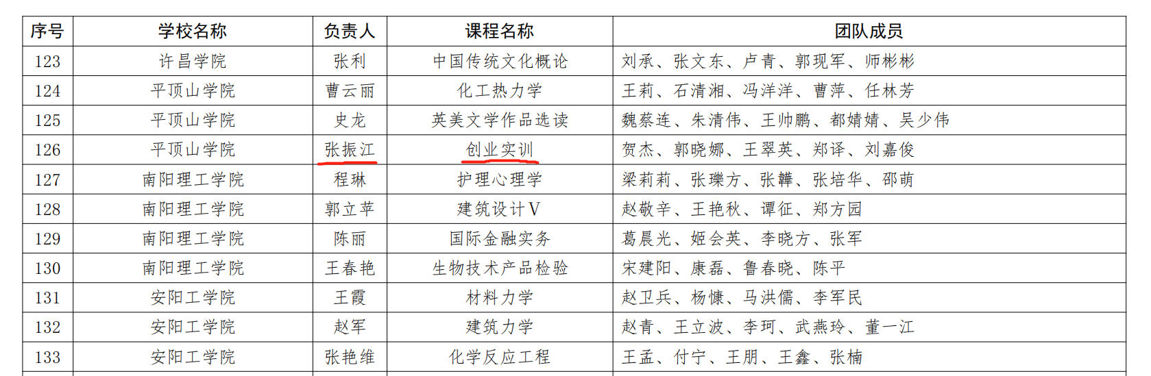 2022年12月21日,河南省教育厅发布《关于公布河南省2022年本科高校课程思政项目建设名单的通知》(教高〔2022〕400号),我院《创业实训》课程获批认定为省级本科高校课程思政样板课程,实现了我院在省级课程思政项目建设上的突破。