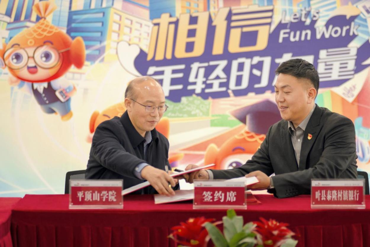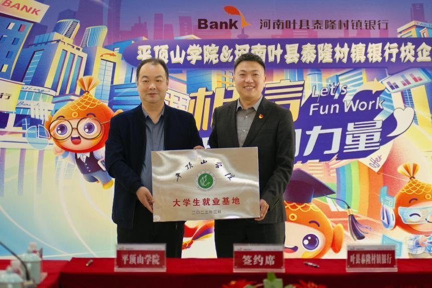 校地合作处处长赵凯介绍了我校的基本情况及办学特色,对河南叶县泰隆村镇银行多年来为学校人才培养所提供的支持表示感谢,期待双方以此次签约为契机,充分发挥双方自身优势,在人才培养、实习实践、双师共建、横向项目合作、毕业生就业等领域不断提升合作水平,为乡村振兴和平顶山经济社会发展贡献力量。