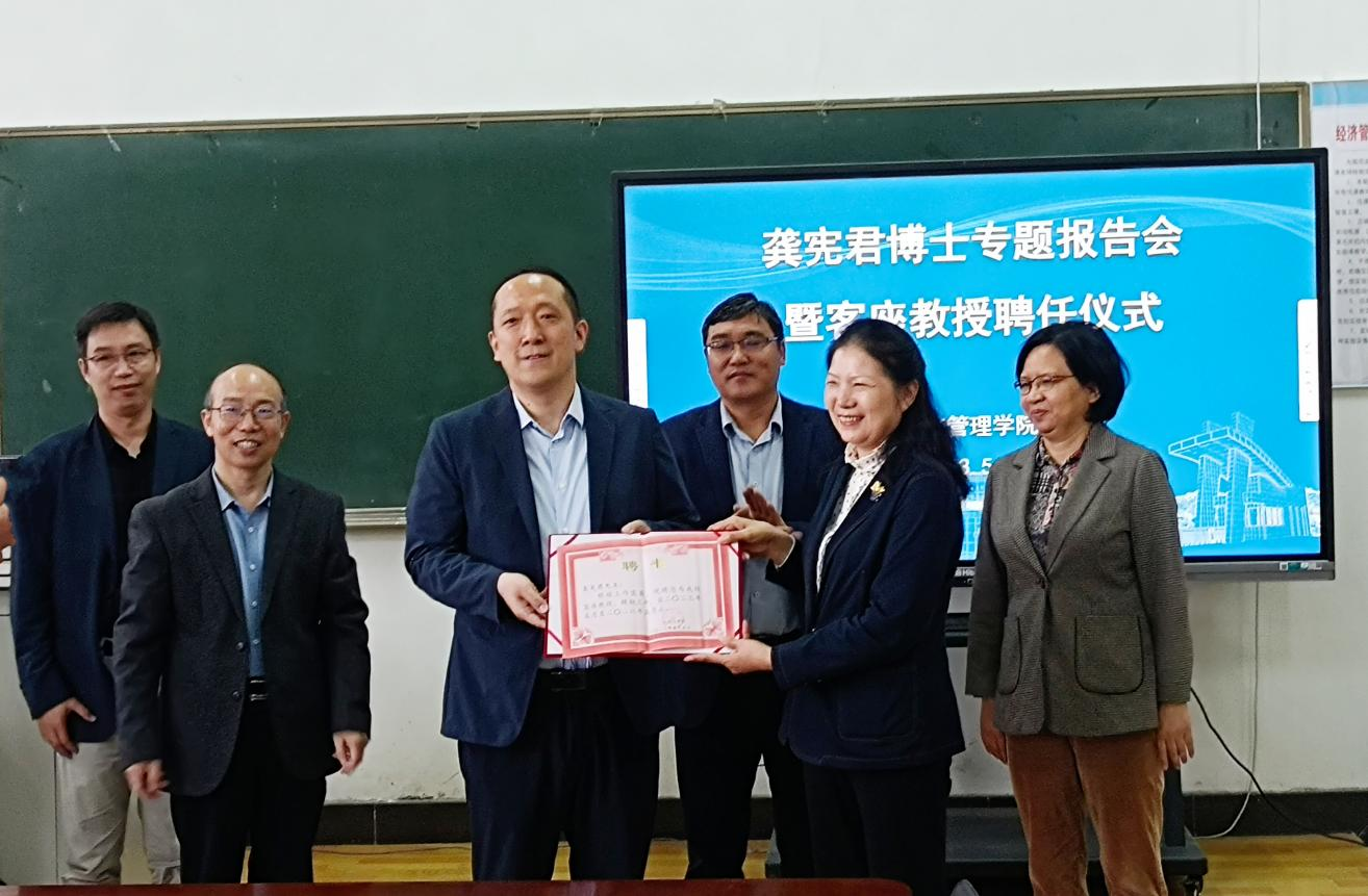程永华代表学校对龚宪君博士受聘我校客座教授表示感谢,并为其颁发了客座教授证书。