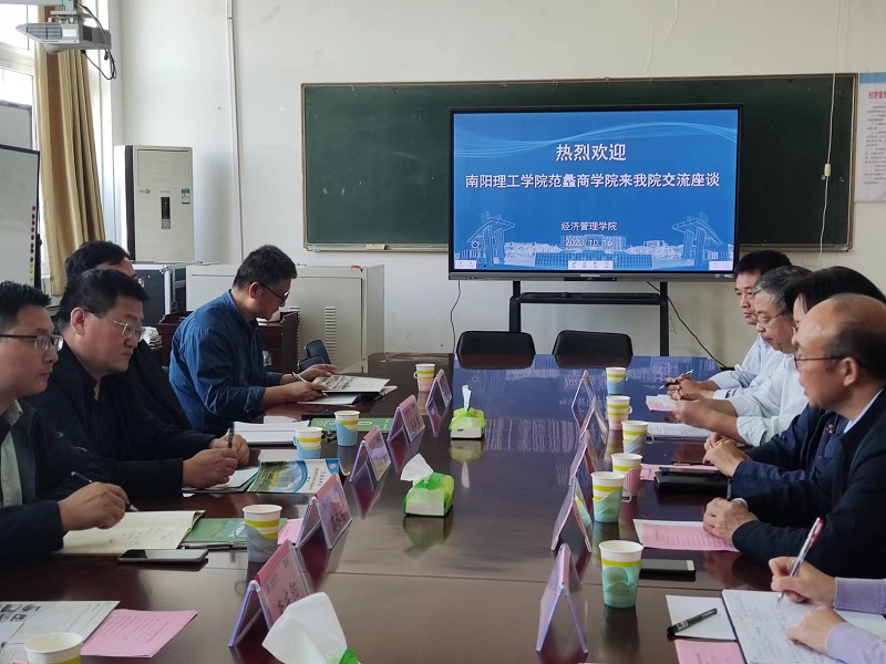 10月16日,南阳理工学院范蠡商学院党委书记闫合占、院长吴战勇等一行5人来我院交流座谈,座谈会在1号教学楼1410室举行。我院党委书记刘嘉俊、院长张振江、副院长李文同以及教科办、相关教研室负责人参加了座谈会。