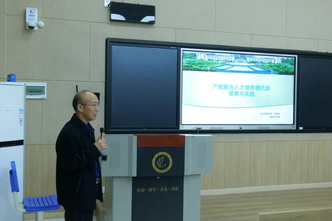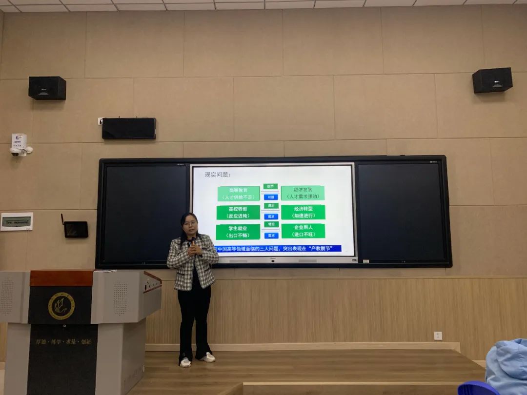 刘军英老师从产教融合的概念、实施产教融合的意义以及我校会计学专业产教融合的探索与实践三个方面进行了分享。她指出产教融合是一种将产业与教育紧密结合的全新合作模式,通过教学与生产实践的无缝对接,形成教学、科研、生产、销售等环节相互支持、相互促进的局面,是“产”与“教”的深度结合,是连接人才需求侧和供给侧的桥梁,是高校依托地方政府、行业企业提升专业人才技能、提高人才培养质量的重要手段。