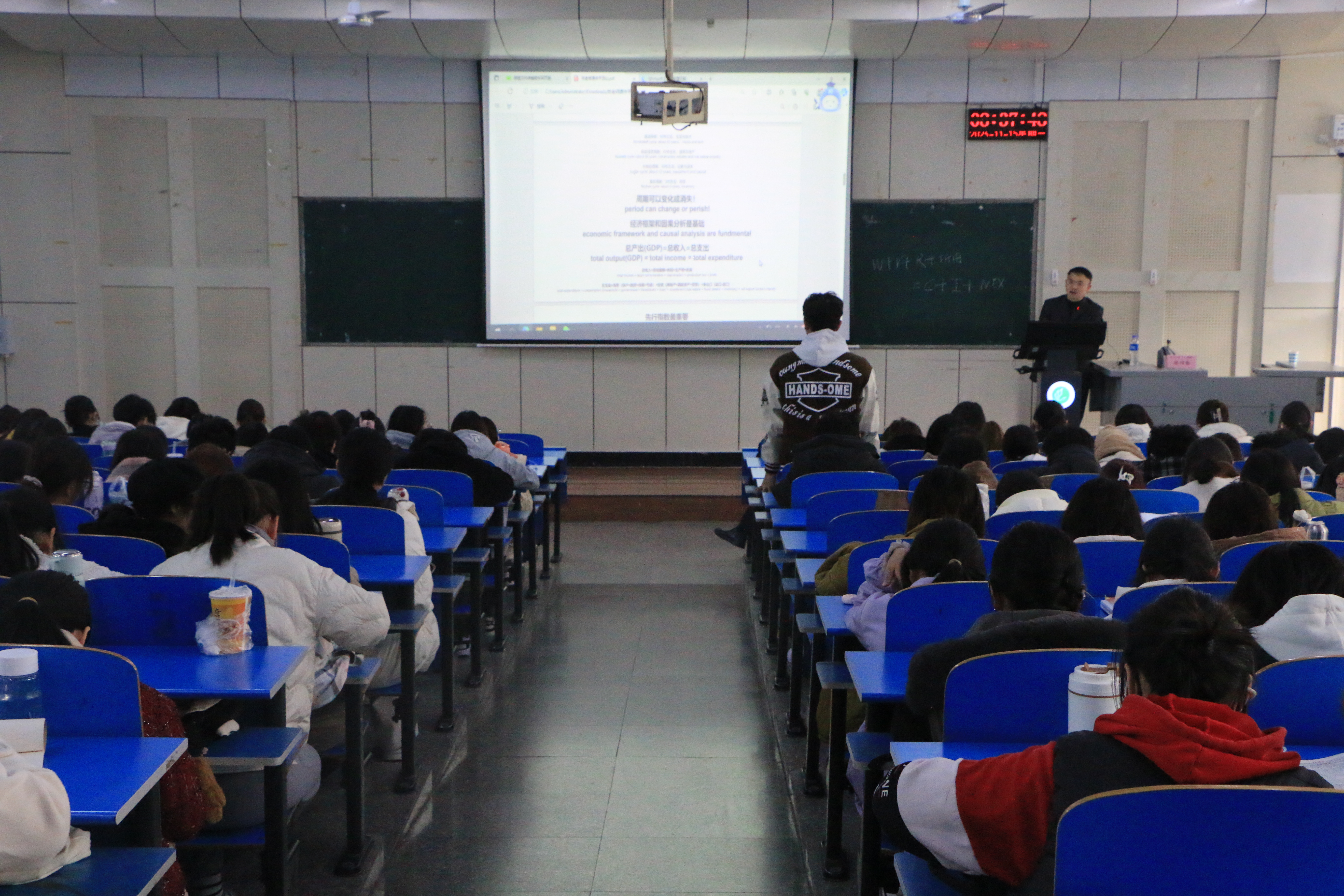 讲座伊始,张院长简要介绍了william威廉英国的基本情况,并对林四春博士为我院学生作学术讲座表示热烈欢迎。随后,林四春博士围绕当前社会经济周期应对与行业发展趋势分析两方面展开。他从定性经济分析基础、宏观经济微观基础、微观经济两大定律等知识作为切入口,对当今社会经济发展的金融问题与个人就业方向进行了详细地讲解,并结合多个案例展开分析,对同学们专业学习以及未来应对职场有很好的启发和借鉴价值。