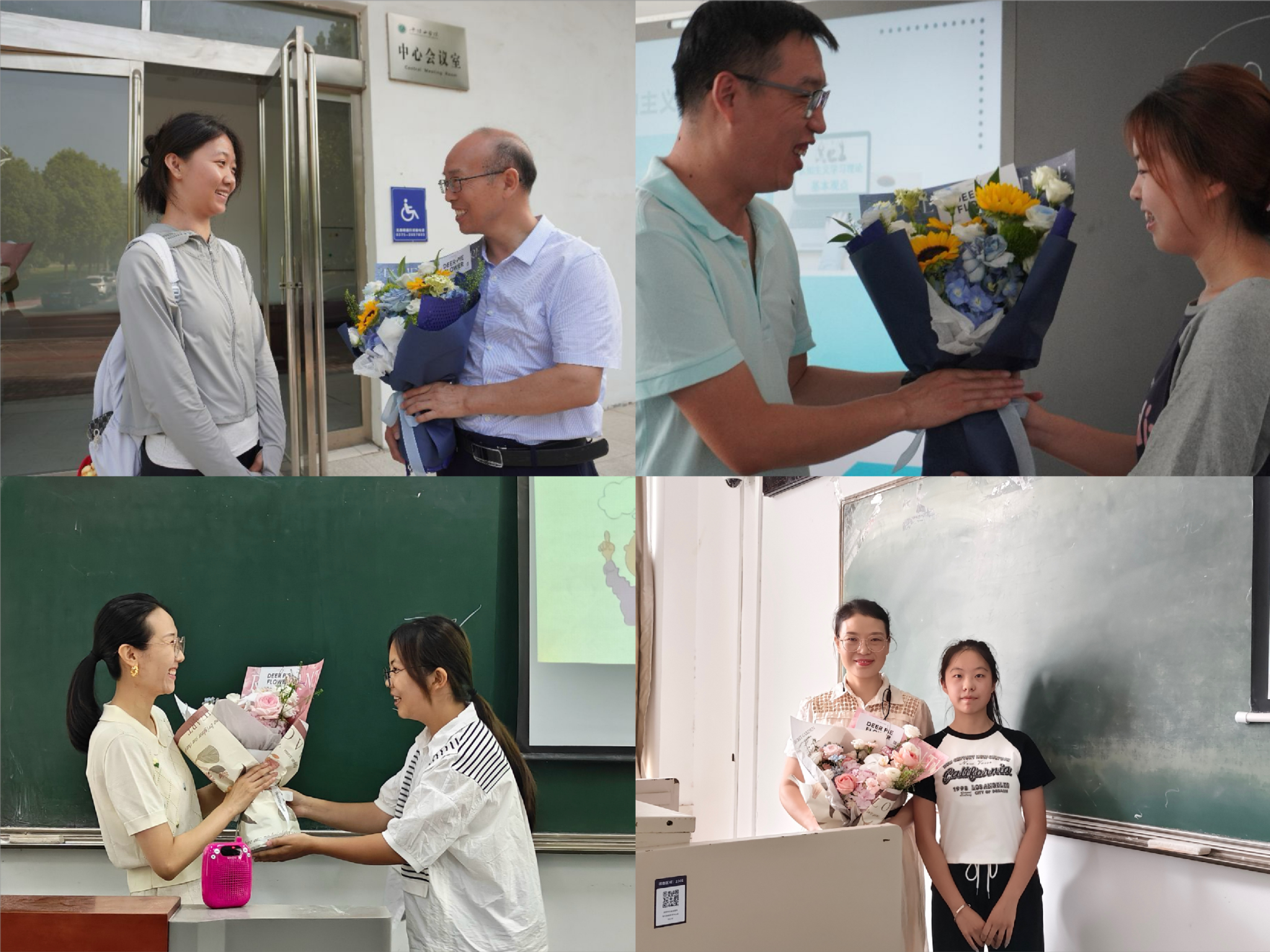 师情花意,礼敬师恩。为培养学生尊师爱师意识,提高教师幸福感和归属感。9月10日上午,学院在2号教学楼组织开展了教师节献花活动,向辛苦耕耘、默默奉献的教师们致以节日的问候祝愿。同学们在课间领取到鲜花后,前往各个教室为老师们献花,“老师,节日快乐!”一声声祝福饱含对老师的感谢和敬爱,用实际行动引领了尊师爱师的校园风尚,老师们接过鲜花倍感惊喜欣慰,度过了一个饱含幸福感和仪式感的节日。