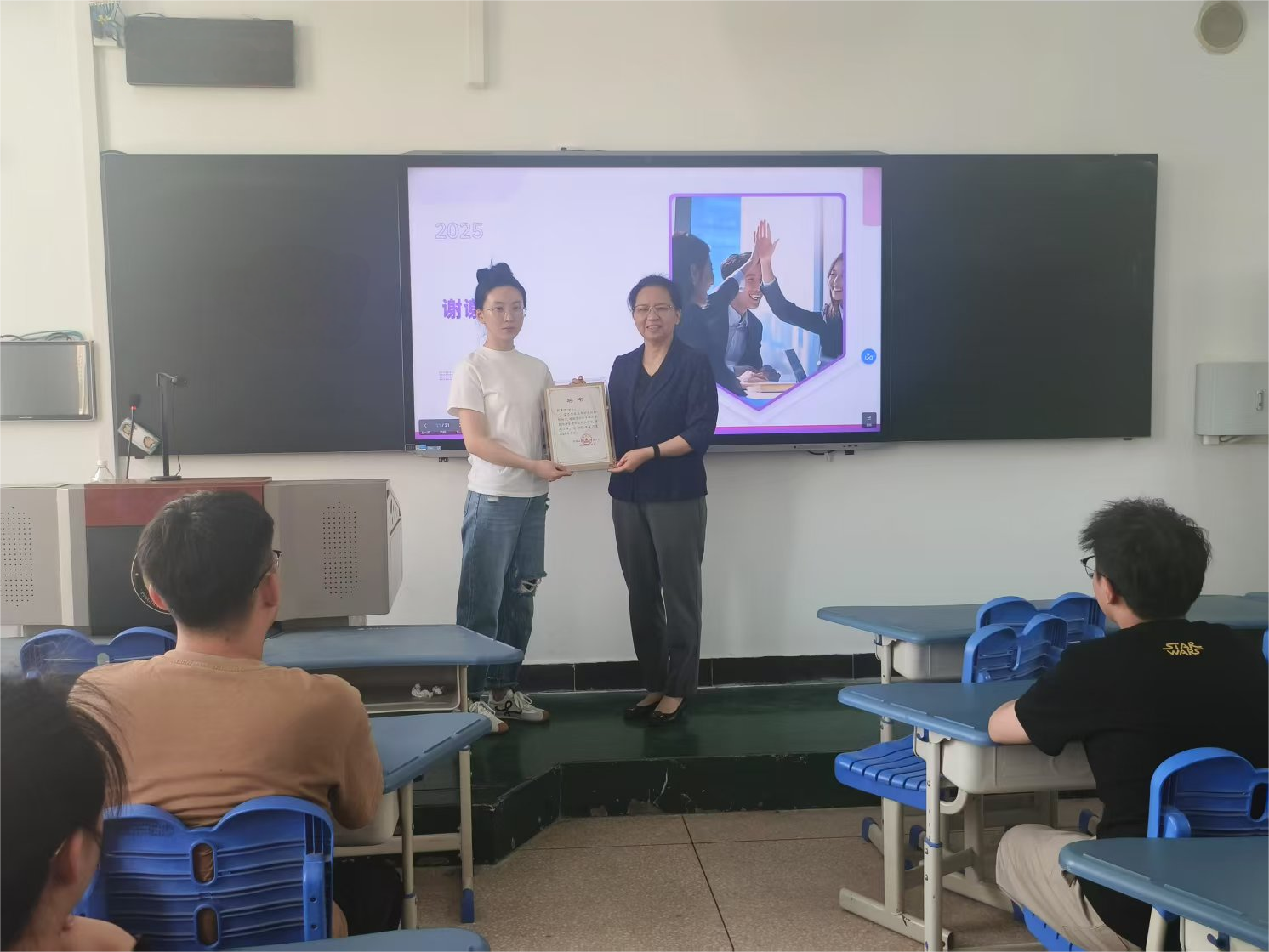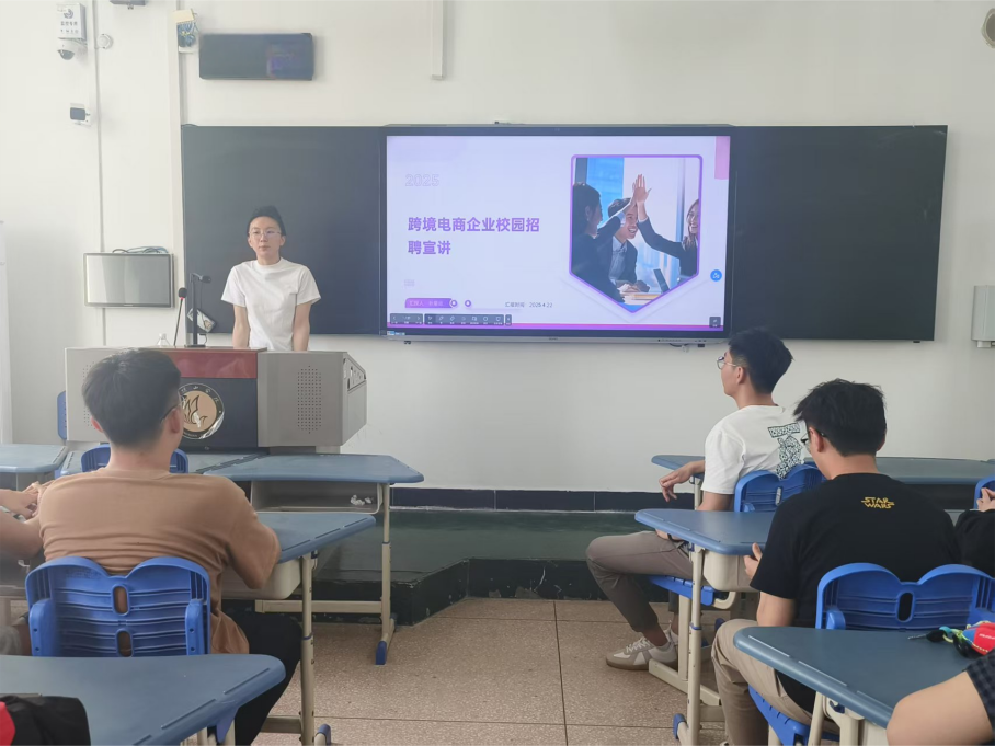2025年4月22日,我校优秀校友、2021届国际经济与贸易专业毕业生耿馨欣返校,与在校学弟学妹进行面对面交流,并做专场招聘宣讲会。我院党委书记刘嘉俊、国贸教研室教师代表以及2025届毕业班同学参加了此次活动。