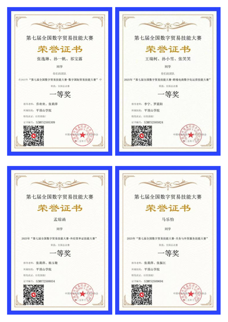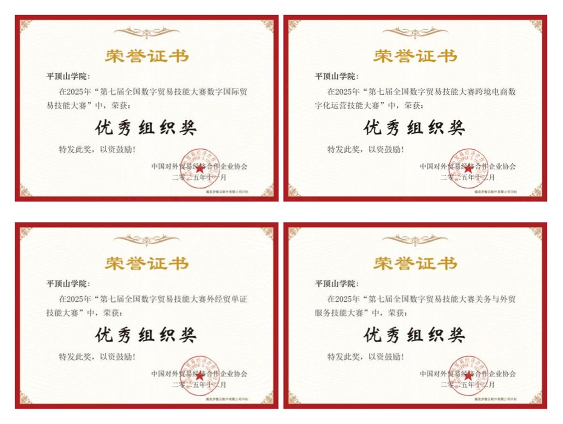 多年来,我校高度重视学科竞赛工作,为学生们的训练活动提供充分保障,积极营造“以赛促学”的良好氛围。今后,我校将继续坚守“赛教融合、产教协同”核心理念,以学科竞赛为引擎,以此为契机,总结备赛参赛经验,积极探索教学与实践相结合的创新人才培养模式,进一步推动教育教学改革与产业需求深度融合,全面提升学生在数字贸易领域的综合竞争力,助力我国外经贸事业高质量发展。