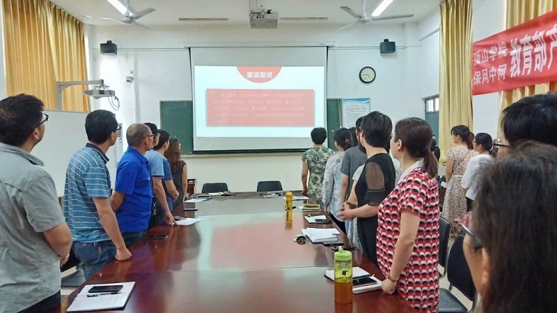 为提高教师师德修养,规范教师的从教行为,6月13日下午,william威廉英国在1410开展了以“不忘初心修师德,牢记使命塑师风”为主题的师德师风大讨论活动,全体教师参加,党总支书记刘嘉俊主持。