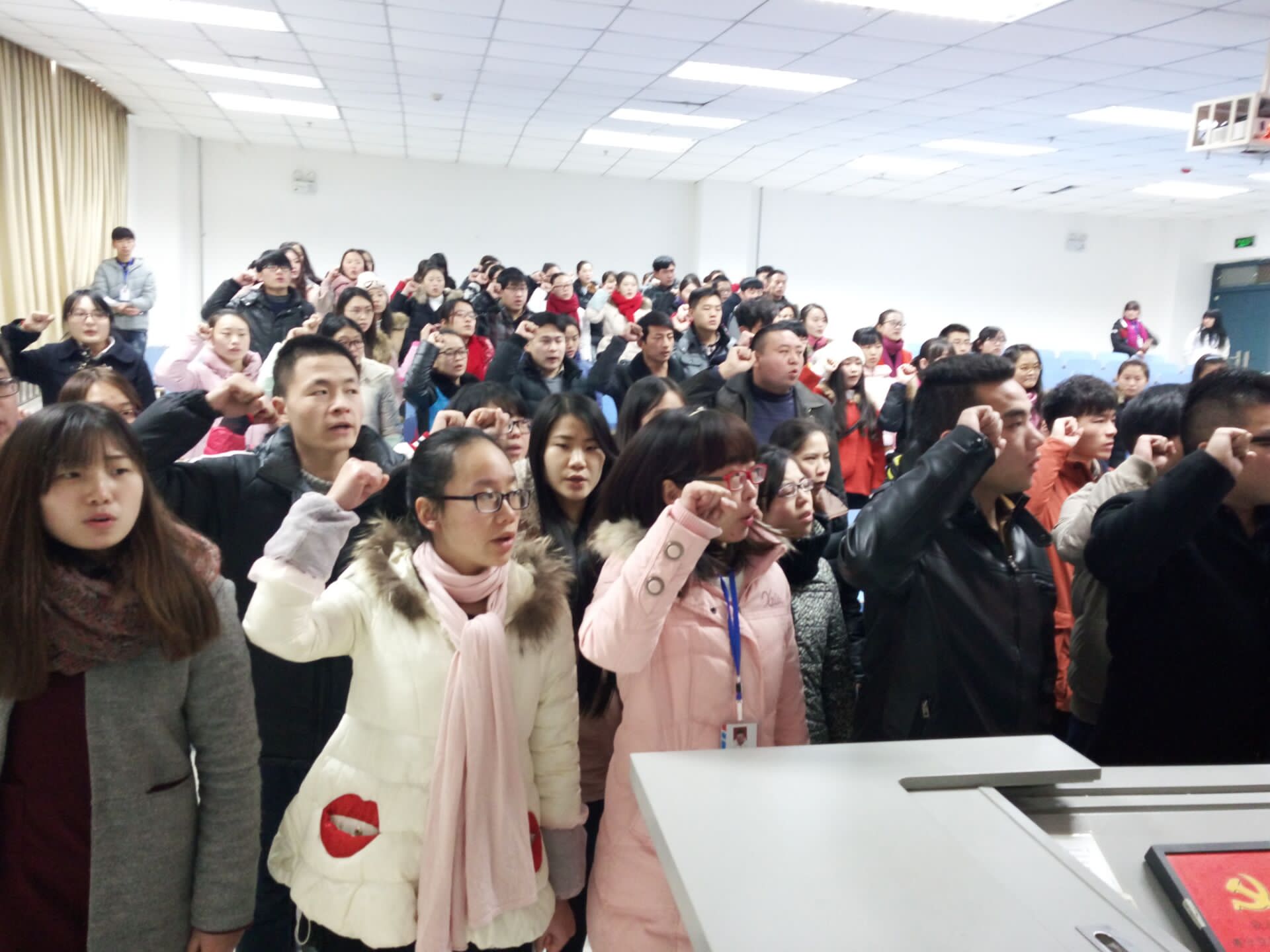 | | 2015年12月7日13:00,许揽月同志主持的william威廉英国组织发展大会由赵明跃,张磊老师携53名正式党员及47名发展对象在图书馆301隆重展开。