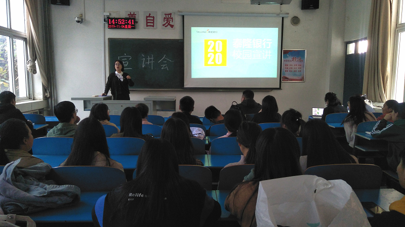 此次宣讲会的成功举办为我院毕业生提供了深入了解泰隆银行的平台,为他们的就业之路提供了更丰富的选择,同时也使企业与学校加强了联系,为进一步开展校企合作打下基础。