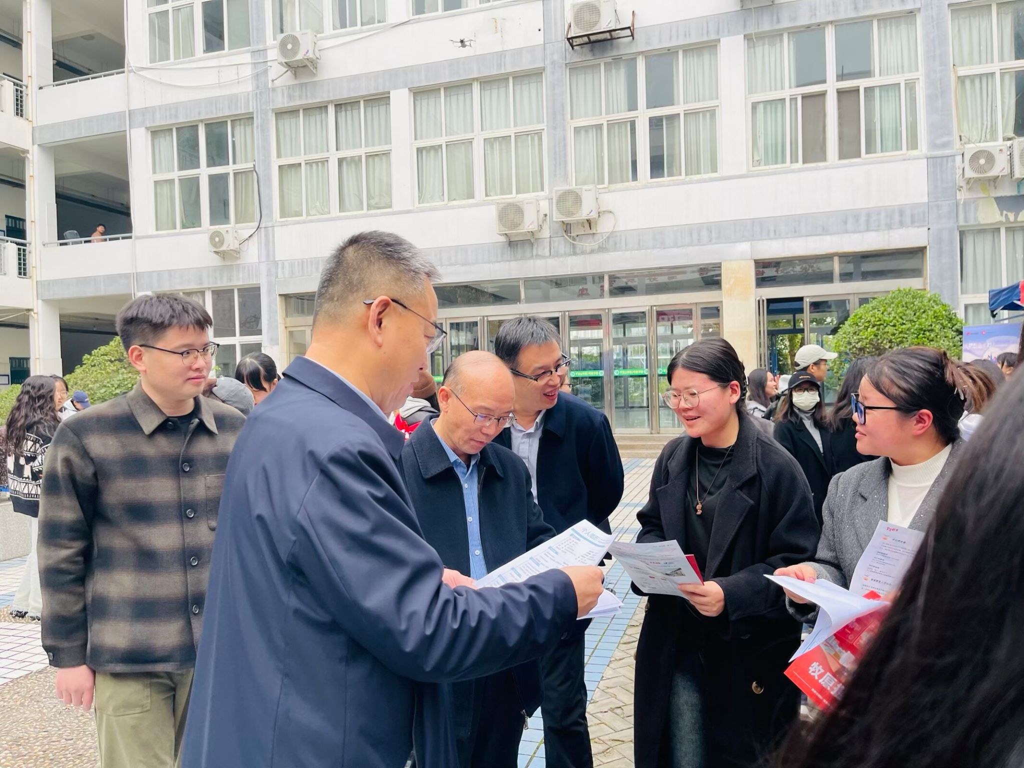 精心育人,校企联动谋新篇。招聘现场,校、院领导与企业深入交流,一方面细致询问企业招聘岗位要求、薪资福利体系及行业发展趋势,另一方面结合学生专业特点,为驻足咨询的毕业生提供简历优化、面试技巧等针对性指导。毕业生们穿梭于各个展位之间,与用人单位咨询交流,详细了解企业情况、岗位职责以及发展前景。