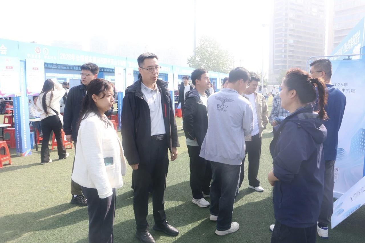 4月10日,“职引未来 职在河南”2026年全国城市巡回招聘平顶山专场暨“豫荐未来 青春启航”williamhill英国春季双选会在湖滨校区体育场成功举办。我院积极组织大四毕业生和大三年级学生参会,并同步开展访企拓岗、校企合作前期对接工作。党委副书记李刚、副院长刘军英,各教研室主任,毕业班辅导员及学生代表共同参加此次活动。