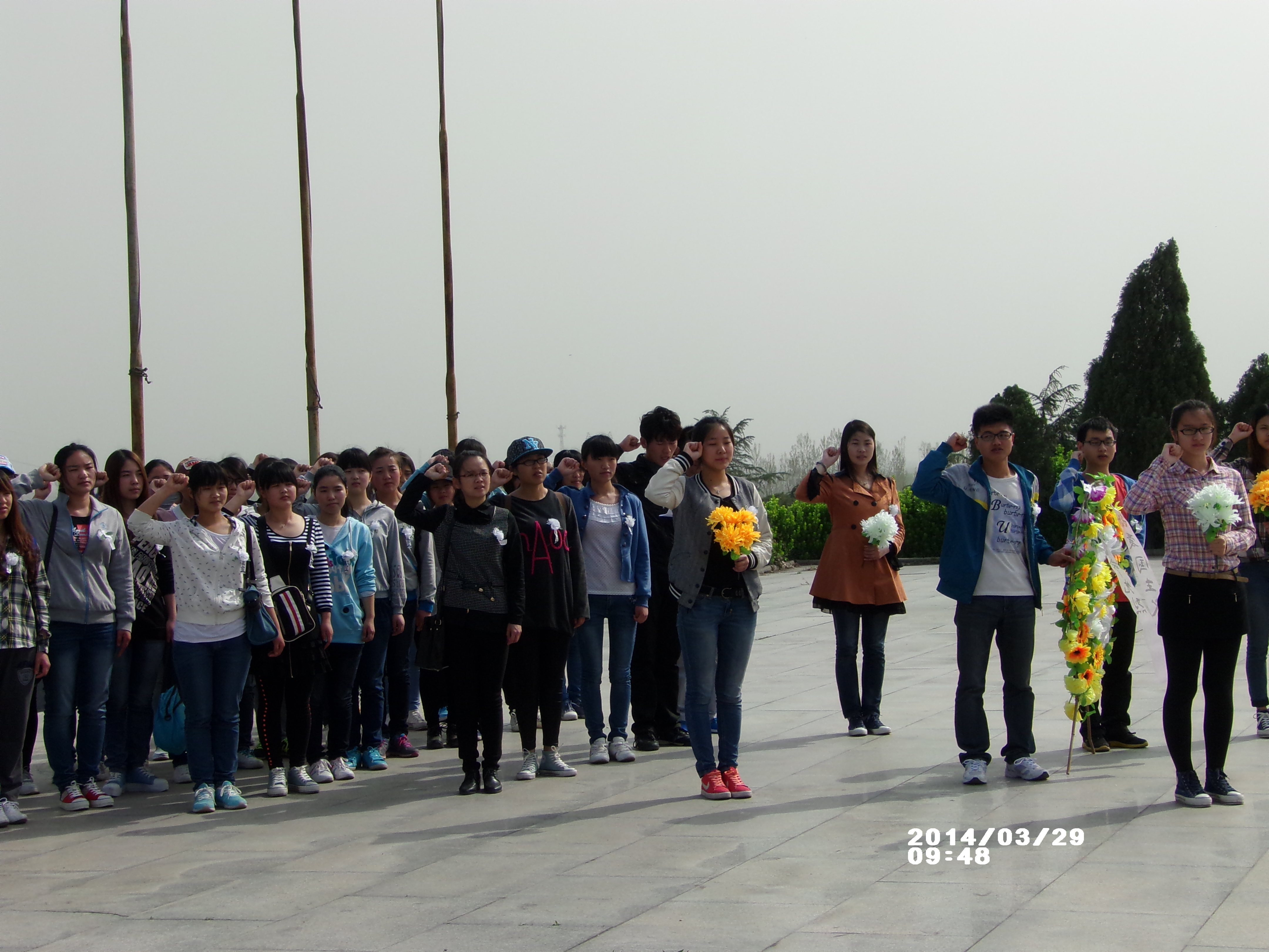 29日上午,在支部工作人员的带领下,参加扫墓活动的学生代表来到了平顶山烈士陵园,紧接着,扫墓活动正式开始,同学们纷纷来到革命烈士纪念碑下,随着支部代表的主持,到场人员全体默哀,默哀结束后又开展了唱国歌、入党宣誓、向革命烈士敬献花圈及鲜花等活动。时值中午,本次活动也接近尾声,在大家稍作休息后全员返校。