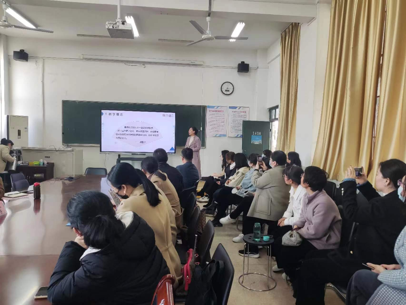 报告结束后,周芳老师与老师们亲切交流。我院教师赵芳、张垒垒和乔欢欢分别做了教学展示,周芳老师进行了一对一的辅导。