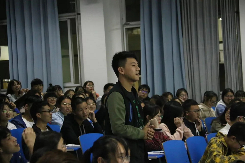 活动伊始,郑老师就“为什么当学生干部”问题与同学展开讨论。围绕“强素质提能力,做合格学生干部”这一主题对如何成为合格的学生干部提出三点要求:第一,学生干部应具备人际沟通能力,指出人生即为推销,推销即为沟通;第二,要具备书写能力,通过现场同学书写假条批阅的情况,向我们说明了学会书写能力的重要性;第三,要具备交往礼仪能力,学生干部要养成律己的好习惯,明确身为一名学生干部需要具备的基本能力和综合素养。