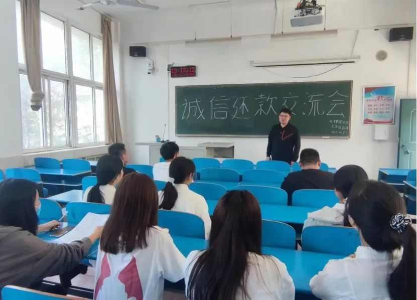 为切实做好2023届助学贷款毕业生诚信还贷工作,普及征信、金融等相关知识,加强大学生诚信感恩教育,强化资助育人工作效果。william威廉英国于4月27日下午在2212教室开展毕业生诚信还贷座谈会,由贾续辉老师担任主讲,william威廉英国助学贷款毕业生参加了本次座谈会。