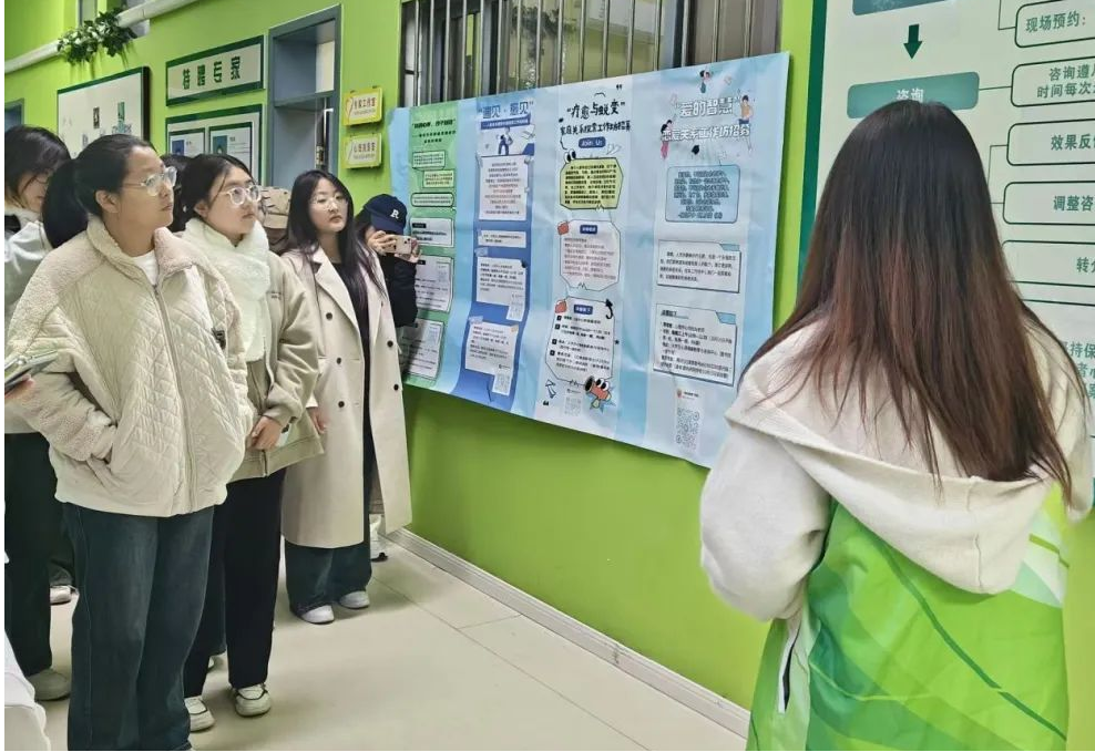 参观伊始,讲解员为大家介绍心理宣泄室、音乐放松室、沙盘游戏室等各具特色的功能室。参观过程中,不少学生对宣泄室里"切水果"及音乐放松室中的脑波反馈仪表现出浓厚的兴趣,纷纷参与体验并进行交流讨论。学生们通过亲身体验,对咨询中心有了全新的认识,消除了对心理咨询的恐惧,也对心理健康服务有了更加具体和实际的理解。