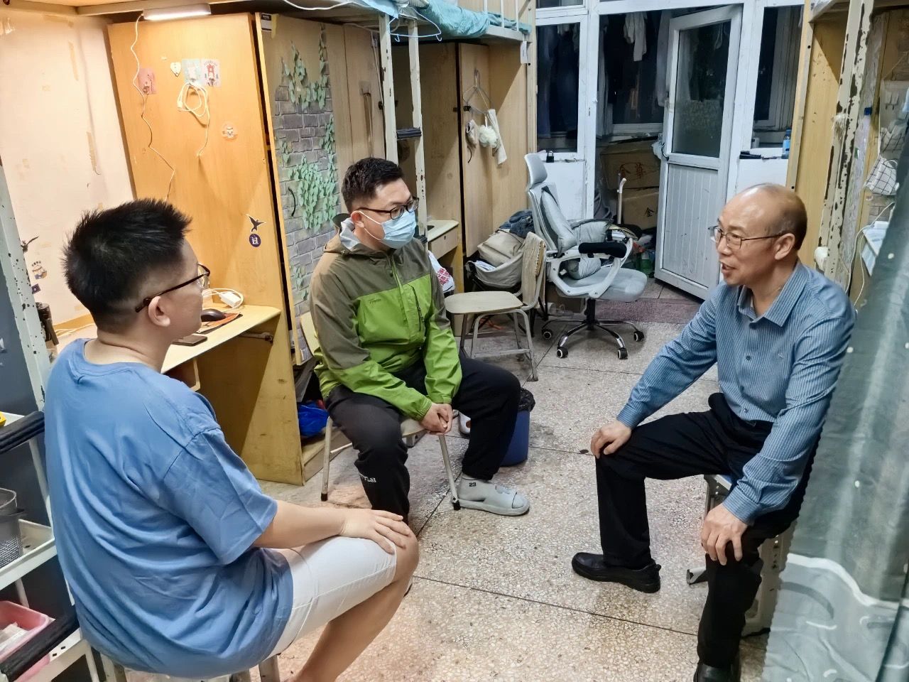院长张振江走访毕业生宿舍了解学生毕业论文进展与就业情况。他仔细询问学生论文答辩进度及学生在答辩中遇到的难题,鼓励大家保持严谨态度,确保论文质量;同时倾听学生就业的去向和困惑,分享求职建议、推荐合适岗位,引导学生积极利用学院资源,拓宽就业渠道。