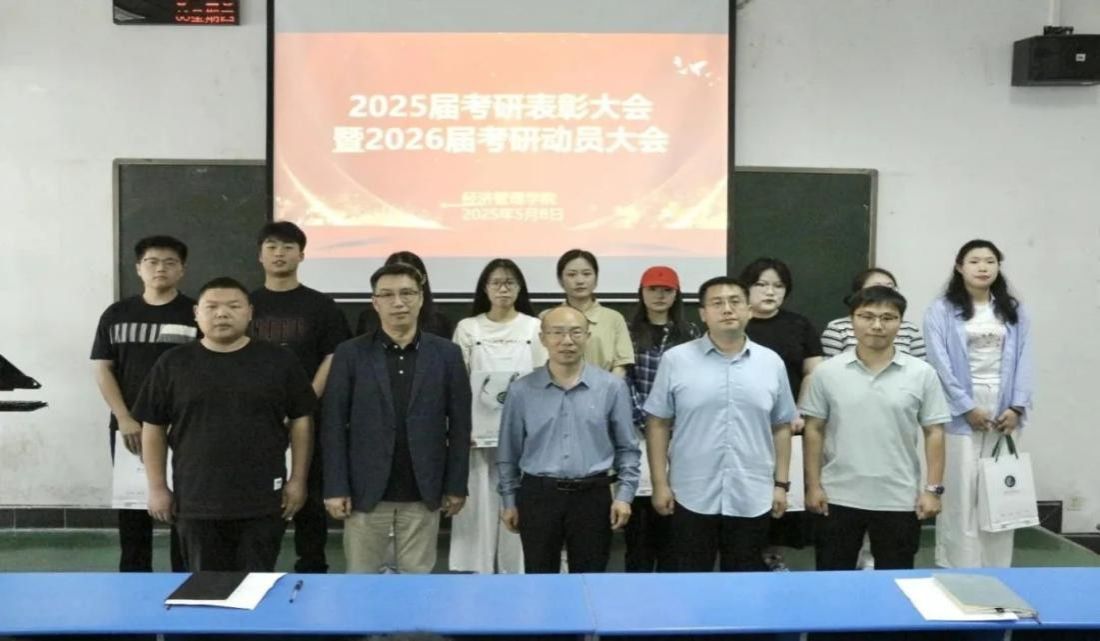 为表彰考研先进榜样、激励学子接续奋斗,5月8日下午,william威廉英国在1206教室召开2025届考研表彰大会暨2026届考研动员大会。院长张振江、党委副书记李刚、副院长贺杰、学工办主任张增辉、团委副书记王哲、2022级辅导员贾续辉以及2025届考研学生代表、2022级学生参会,会议由毕业班辅导员尹晶晶主持。