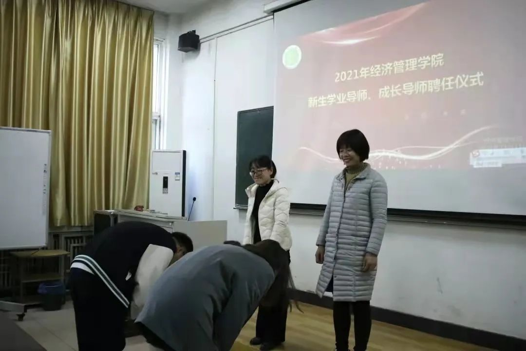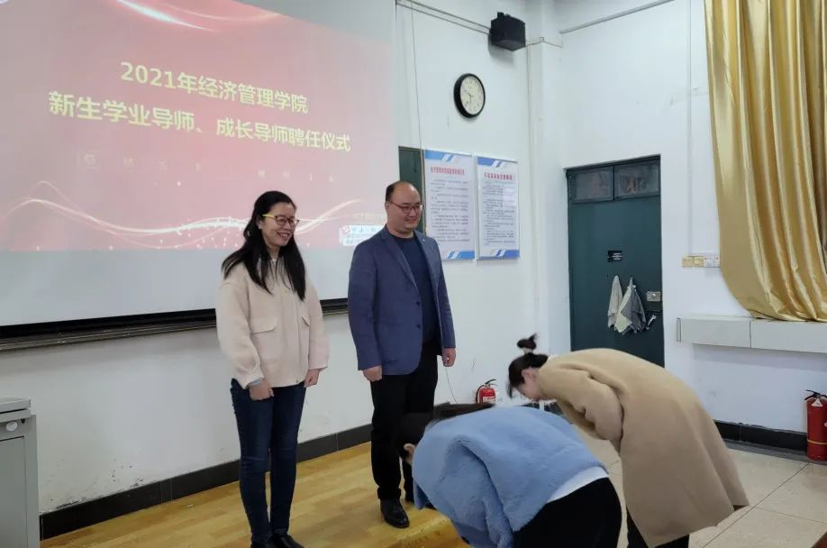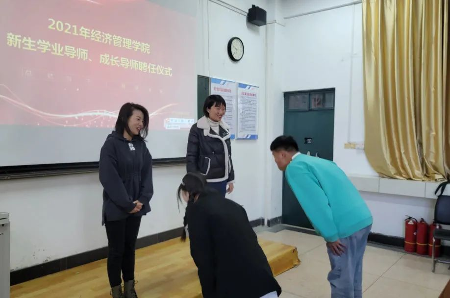 学生代表对学业导师、成长导师行拜师鞠躬礼。