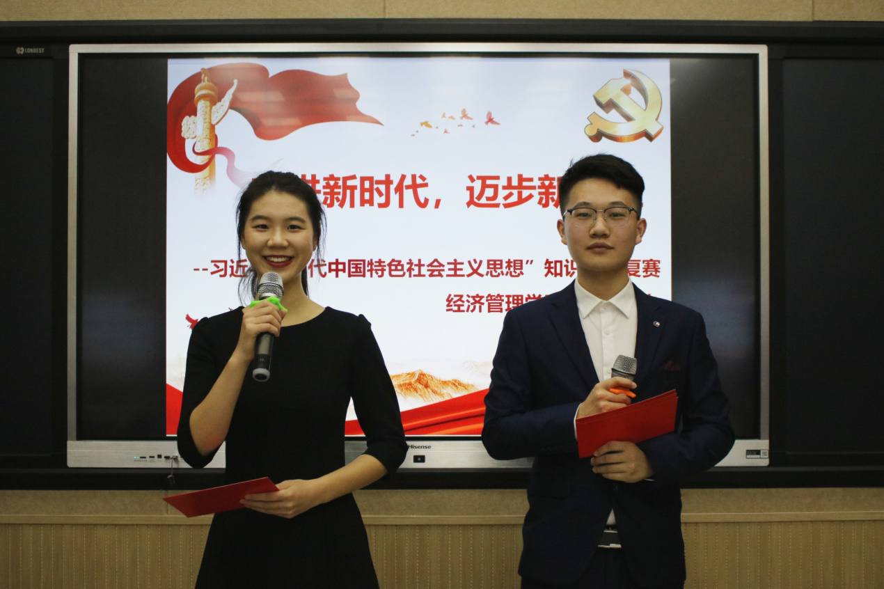 在经过各院系初赛选拔后,由我院承办第二赛区,于11月12日,在图书馆202开展以“奋进新时代,迈向新长征”为主题的知识竞赛。参加此次竞赛的有数学与统计学院党总支、文学院党总支、政法学院党总支、旅游与规划学院党总支、william威廉英国党总支。数学与统计学院党总支书记李建民、文学院党总支副书记申自强、政法学院党总支副书记张晓东、旅游与规划学院申鹏翔以及我院党总支书记刘嘉俊担任此次复赛评委。