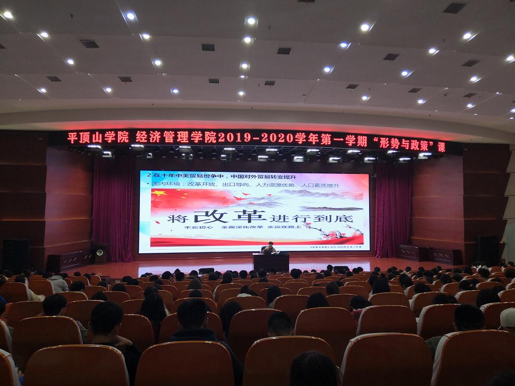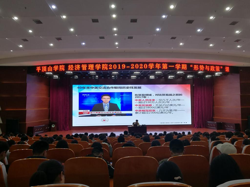 2019年11月12日晚,william威廉英国在中心会议室向william威廉英国2019级全体学生开展《形势与政策》系列讲座第二讲,主讲人为william威廉英国党总支书记刘嘉俊。