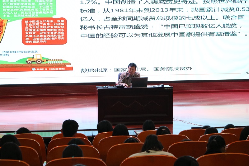 随后,周院长从政治、制度、经济、文化、国防和外交、党的领导等方面,深度讲解了建国70年来,尤其是改革开放40年来中华大地上的沧桑巨变。在此基础上,周院长认为,我们应以历史和科学的眼光认识70年社会主义革命、建设和改革的现实启示。始终坚持党的全面领导,不断加强先进性和纯洁性建设。始终坚持从国情出发,不断推进理论创新和实践创新,坚持世界眼光和开放胸襟,不断推进改革开放,巩固和发展新时代全方位、多层次、宽领域的对外开放格局。