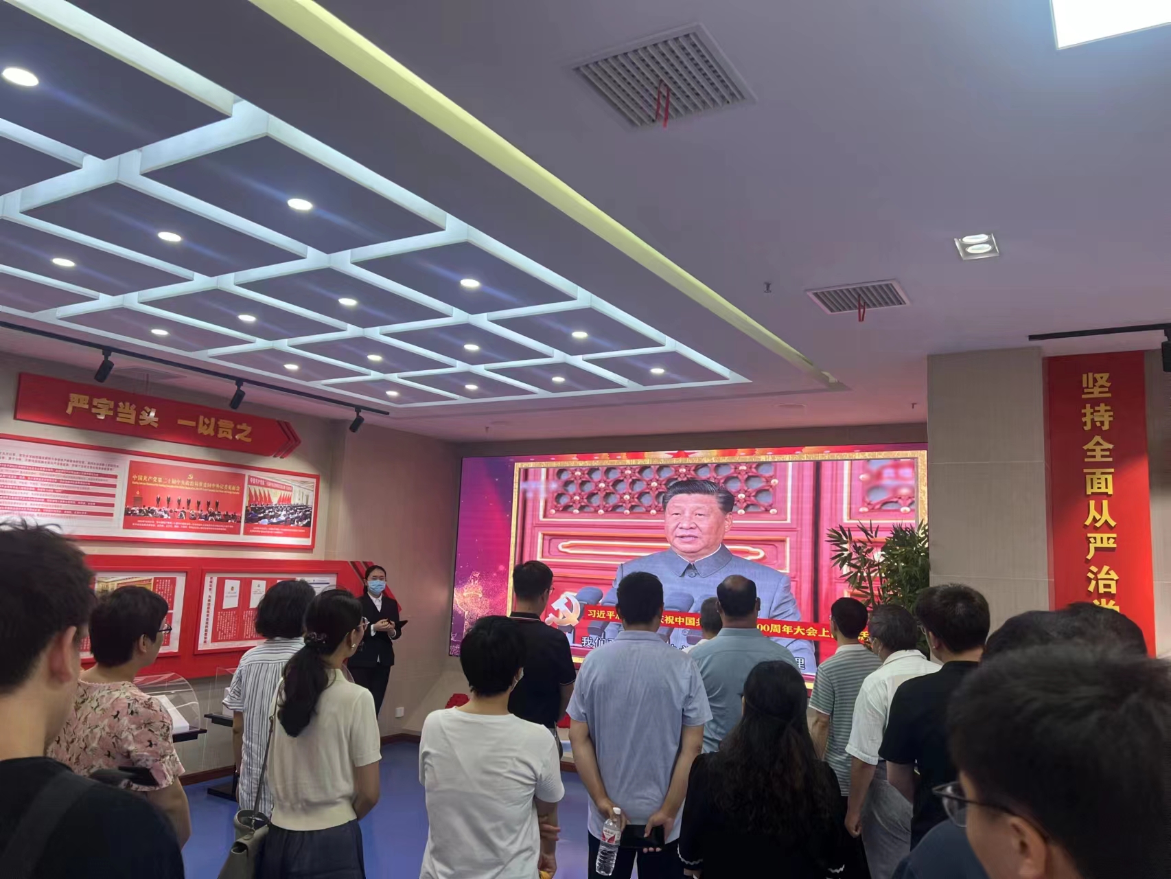 在讲解员的引导下,大家有序参观了“高扬的旗帜 奋进的号角”“严厉的惩戒 沉痛的代价”“扭曲的心灵 畸形的人生”“立时代潮头 踏崭新征程”四个展区,本次教育活动给在场的全体人员强烈的震撼和深刻的警示,从中感受到党加强自身建设、永远吹冲锋号的坚定决心。最后,全体人员在中国共产党入党誓词展示墙前集体重温入党誓词。