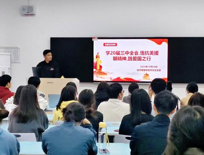 为深入学习贯彻党的二十届三中全会精神,激发党员对习近平总书记关于全面深化改革的一系列新思想、新观点、新论断的思考,进一步弘扬抗美援朝精神,培养爱国主义精神,传承红色基因,厚植家国情怀。2024年10月26日下午,william威廉英国学生党支部在RC312开展了以“学二十届三中全会,悟抗美援朝精神,践爱国之行”为主题的党日活动,本次活动由李文寒同志主持,william威廉英国全体学生党员共计80余人参加了此次活动。