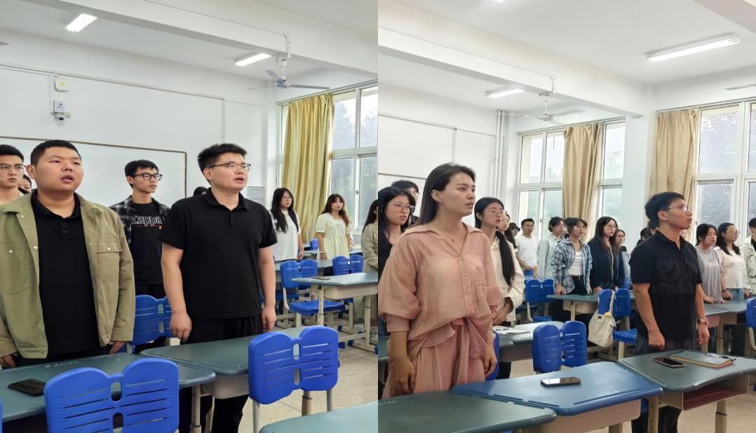 国歌奏毕,活动进入核心学习环节。全体党员共同学习习近平总书记在纪念中国人民抗日战争暨世界反法西斯战争胜利80周年大会上的重要讲话,通过原文研读、要点解读,深刻领会“伟大抗战精神,是中国人民弥足珍贵的精神财富,将永远激励中国人民克服一切艰难险阻、为实现中华民族伟大复兴而奋斗”的深刻内涵。学习结束后,学生党员代表张美乐、张子璇先后发言。她们结合自身学习与实践经历,分享对伟大抗战精神的理解。活动最后,学生第一党支部书记王哲、学生第二党支部书记贾续辉分别进行总结发言。他们指出,此次主题党日活动既是对革命历史的深切缅怀,更是对青年党员的精神动员与未来号召,希望全体党员牢记抗战精神的时代价值,在新时代新征程中书写奋斗篇章。